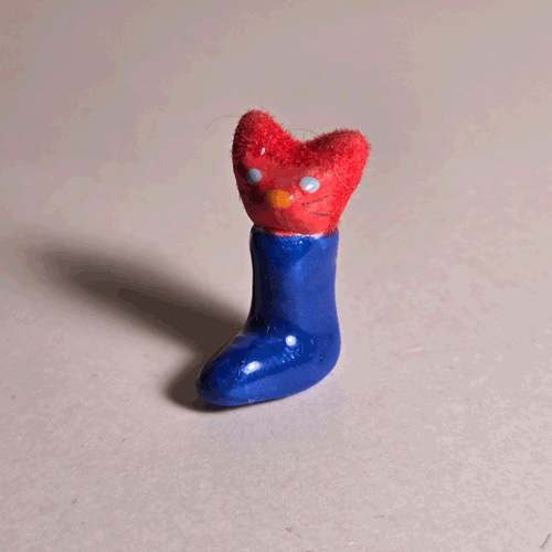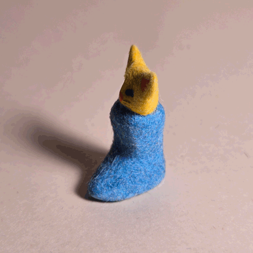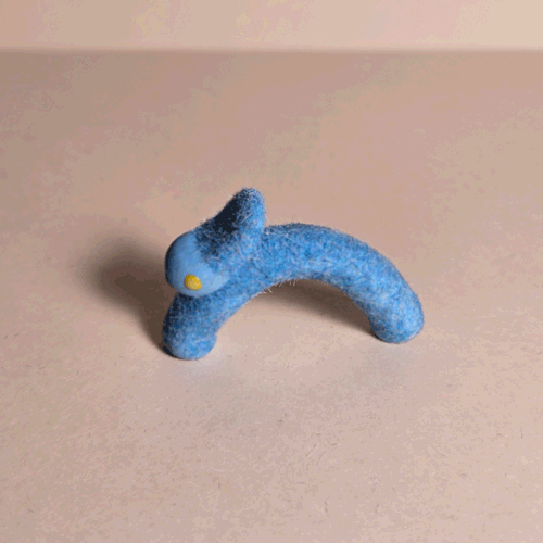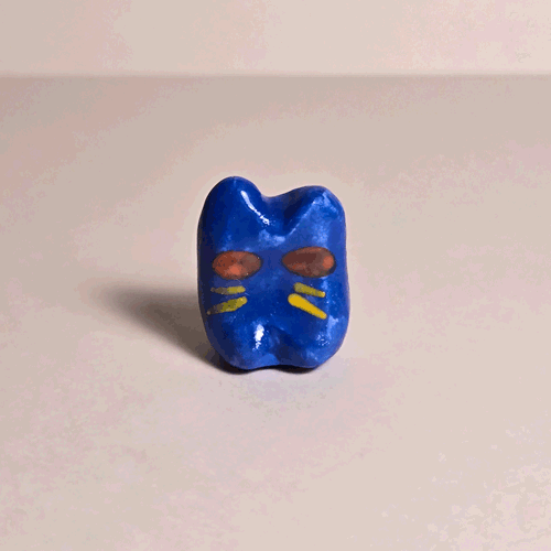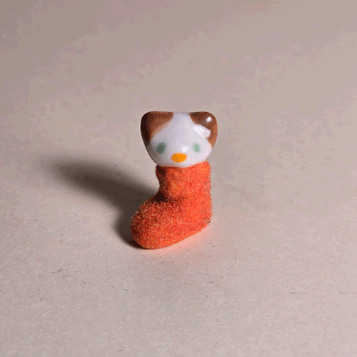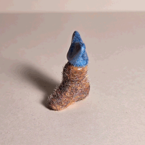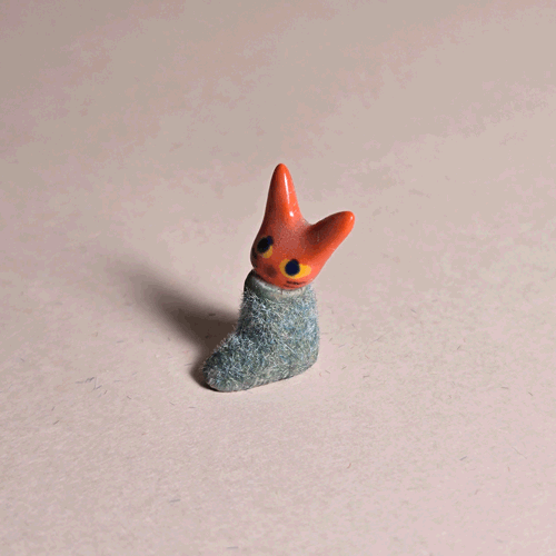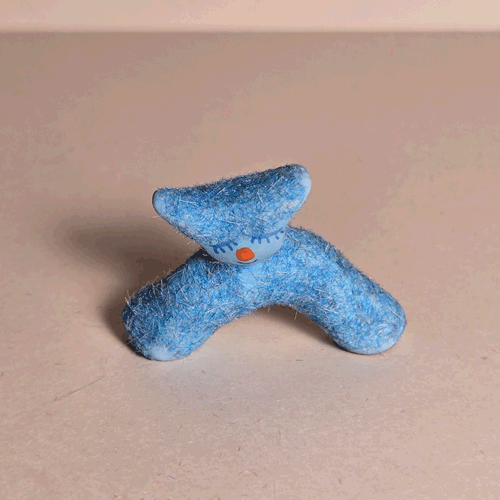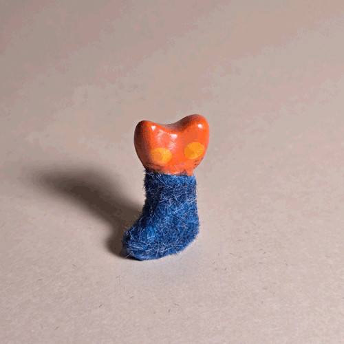 Fuzzy Blue Booty-Pet: Orange Catsemi-glazed, blue flocked porcelain