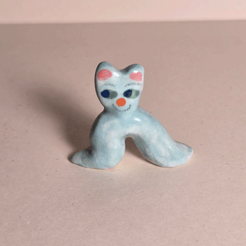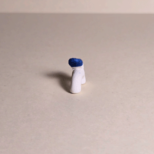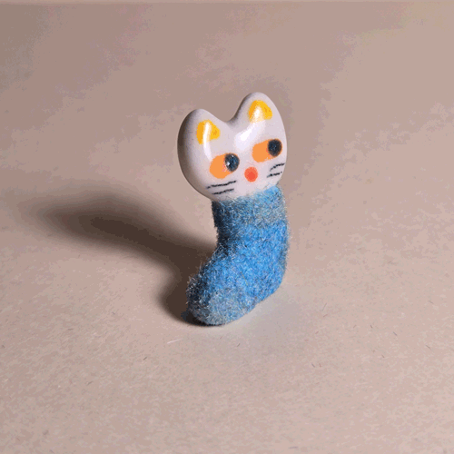 Fuzzy Blue Booty-Pet: White Catsemi-glazed, blue flocked porcelain