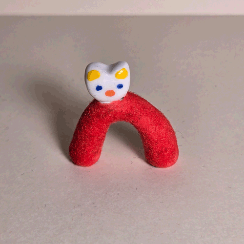 Fuzzy Red Totoro-Catred flocked porcelain,