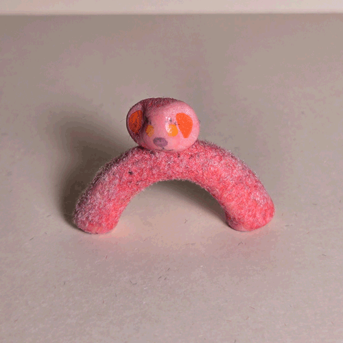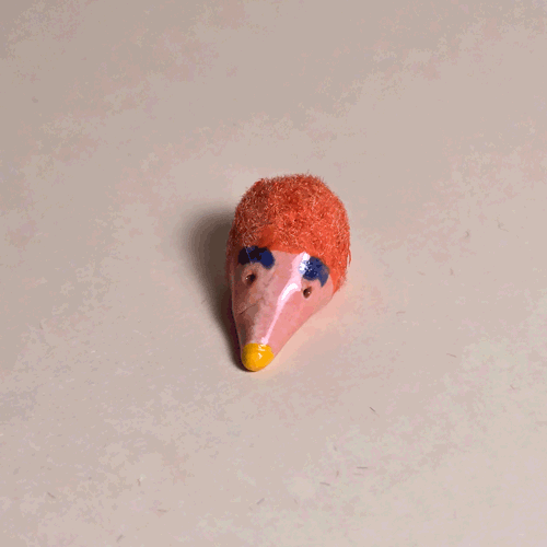 Fuzzy Pink Hedgy-Hogsemi-glazed, pink flocked porcelain,