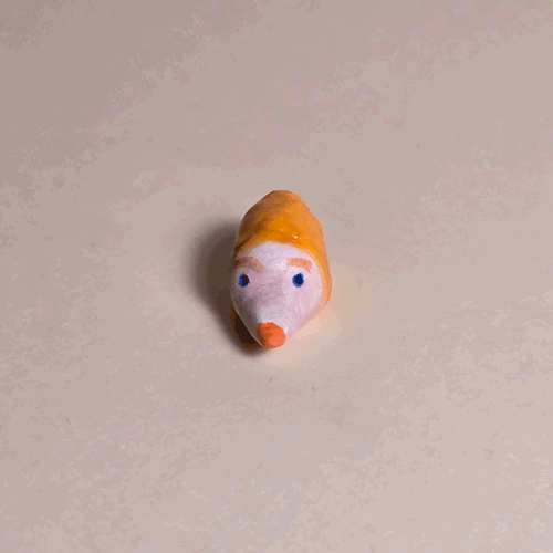 Fuzzy Orange Booty-Pet: Brown & White Hamstersemi-glazed, orange flocked porcelain