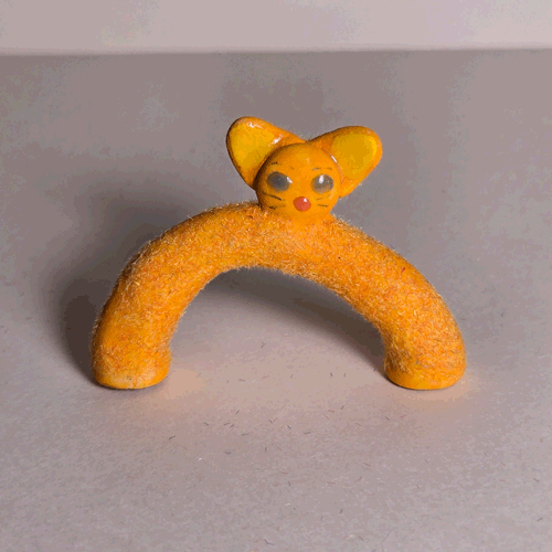 Fuzzy Orange Booty-Pet: Brown & White Mousesemi-glazed, orange flocked porcelain
