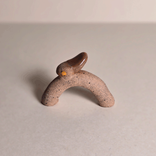 Brown & Pink Hedgy-Hogsemi-glazed porcelain,