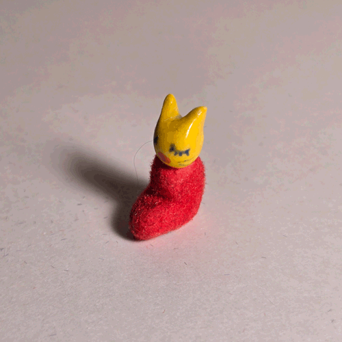 Fuzzy Red Booty-Pet: Yellow Cat